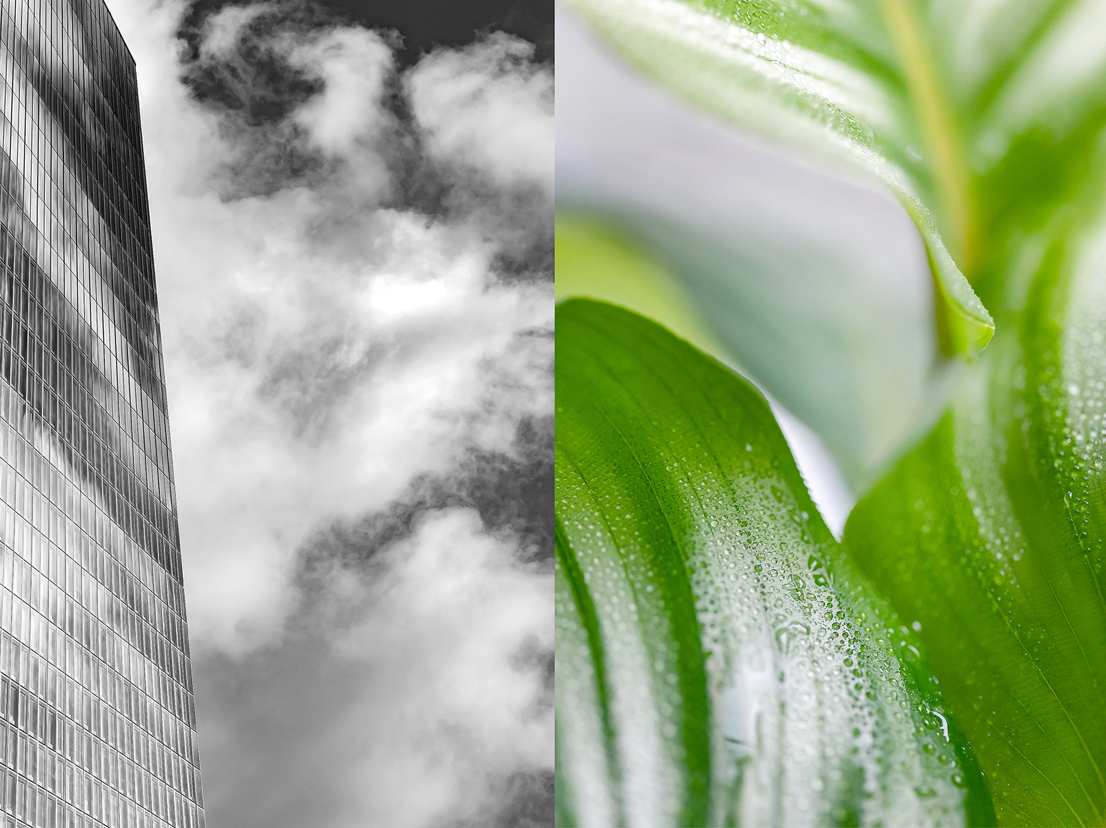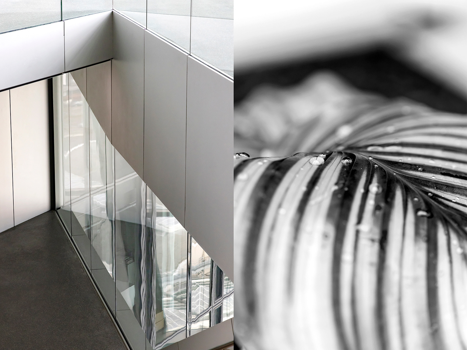 After visiting the new ECB library, I was inspired by the beauty and the poetry of the dialogue between the historical "Grossmarkthalle" and the new Main Building. Working place, creativity place, knowledge place are definitions of this European library. As a symbol of Europe, I took details of the Main ECB Building. "Close-ups" of the architecture embody different sources of inspiration in my work. But, above all, one detail evokes more than it shows, a piece of architecture for the building and the building for the European Idea. Black and white in dialogue with green and color pictures generate abstract mental imagery, sometimes like a beehive, like a sailing boat...
