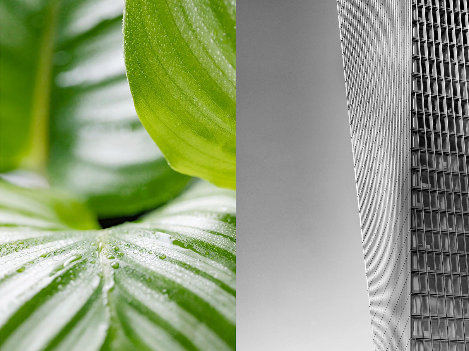 Confrontation between the two pictures open passages from humanity in the nature to the urban world, from the empty to the full, from the straight to the curve, from the decorative to the abstract. Photos, tell us the story of an ecologic world from which we cannot escape to a creative world, which extract us from reality.
